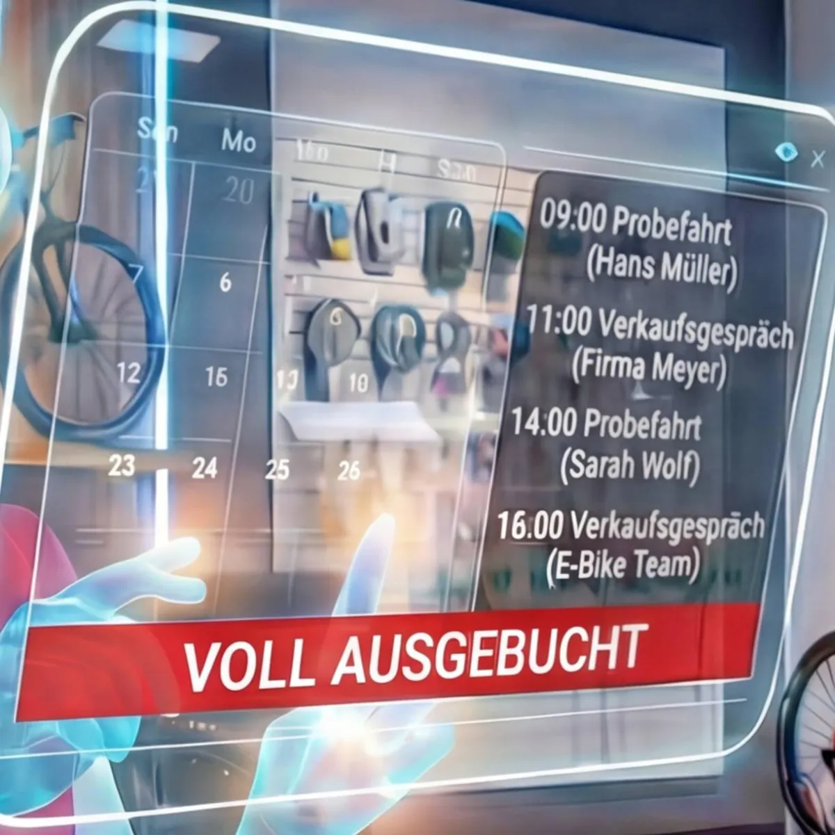 „Ein Kunde suchte sonntags um 21 Uhr ein Cube E-Bike. Meine KI nahm den Chat an, bestätigte die Verfügbarkeit und buchte die Probefahrt für Montag. Früher wäre dieser 4.500€-Umsatz an einen Online-Shop gegangen. Jetzt landete er in meiner Kasse, während ich Tatort schaute.“